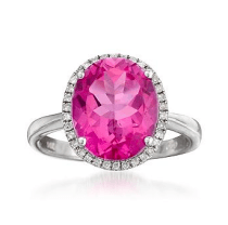 5.50 Carat Pink Topaz and .10 ct Diamond Ring in 14kt White Gold