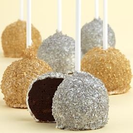 Cake Pops are fun and on trend right now. Make them with this Cake Pop Kit ($19.95, Amazon) or buy them, I liked tues Handmade Gold and Silver Cake Pops (starting at $19.99, Sharie’s Berries)