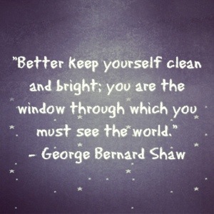 “Better keep yourself clean and bright; you are the window through which you will see the world.” – George Bernard Shaw